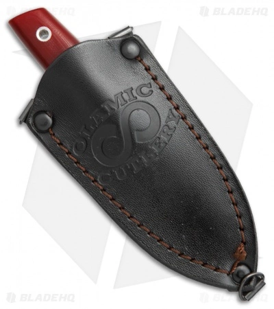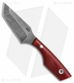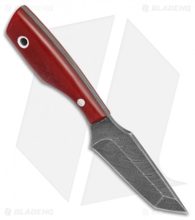 This tanto neck knife has a beautiful HCVD Damascus steel blade and contoured red G-10 scales. It comes with a premium leather sheath for neck carry.