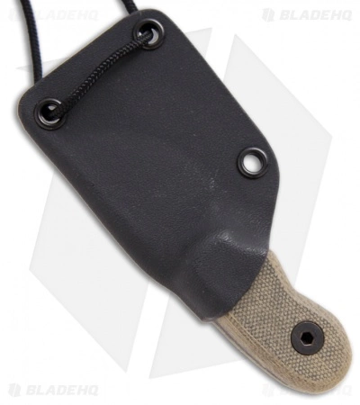 The Little Bird fixed blade knife packs a lot of utility in a small package. It features a black texture powder coated 1095 steel blade with a plain edge. The full tang blade has thumb notching on the spine for a strong grip. This model features black Micarta scales. Includes Kydex sheath with paracord neck lanyard.
