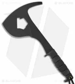 The SP16 SPAX is designed primarily as a backup breaching tool for use by fire/rescue personnel. It features a razor-sharp 1095 epoxy powder-coated carbon steel blade with a special hole that is sized for opening and closing fire hydrants or gas valves. The SP16 SPAX utilizes the Spec Plus ribbed Kraton handle for high comfort while the full tang construction ensures it will last through years hard use.