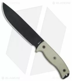 The Ontario RAT-7 is a large knife with plenty of cutting power. This RAT-7 fixed blade has a flat ground, black coated 1095 carbon steel blade with a plain edge. The handle has canvas Micarta scales and a lanyard hole in the pommel. Includes a black nylon sheath.