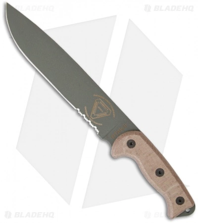 The RTAK-II has a 10-1/2 inch blade made from 5160 steel and texture powder coated foliage green. The handle has thick canvas Micarta scales. Comes standard with MOLLE compatible black nylon sheath with edge protecting hard plastic insert and roomy utility pouch.