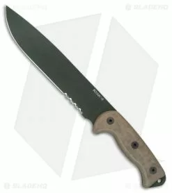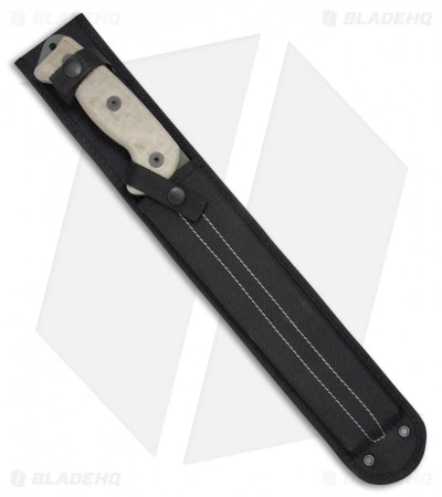 The RTAK-II has a 10-1/2 inch blade made from 5160 steel with a foliage green texture powder coat. The handle has thick natural canvas Micarta scales. Comes standard with MOLLE compatible black nylon sheath with edge protecting hard plastic insert and roomy utility pouch.
