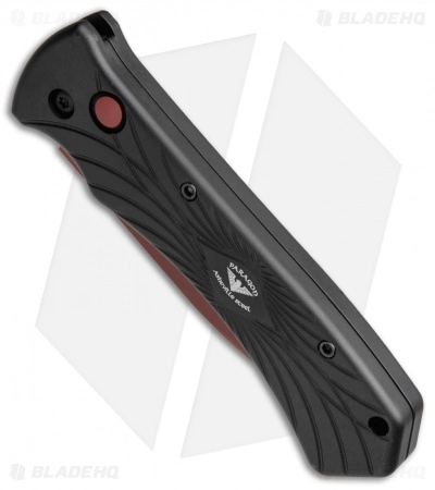 The Paragon ERT (Emergency Response Team) from Asheville Steel is a fast action automatic knife for those crucial moments when draw time is critical. This ERT is equipped with a CPM-154 clip point blade with a durable red finish. The aluminum handle, pocket clip, and hardware are all black coated for a uniform tactical appearance. A red finish has been added to the firing button to match the blade.