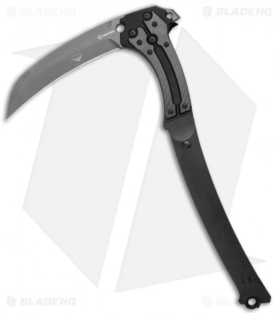 The Paragon Reaper Scythe is a meaty, wicked-looking tactical tool. It has a G-10 clad handle with carbon fiber accents, and a D2 blade with a gray finish, a razor edge, and a wicked point. The piece comes complete with a secure kydex sheath that has a belt attachment. Add a skull mask and cloak to the mix, and you’ll be feeling like Death himself!