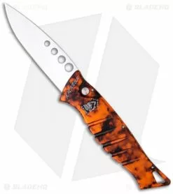 Piranha’s Amazon is another awesome automatic knife with hard-hitting action, so you’ll need to hold on tight! The 6061-T6 aluminum handles have grip grooves and a steel pocket clip. The 154-CM stainless steel blade has a great profile and masterfully integrated holes below the spine.
