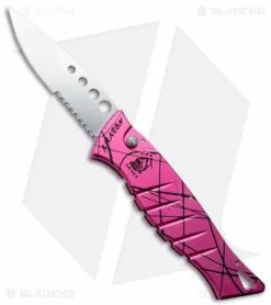 Piranha’s Amazon is another awesome automatic knife with hard-hitting action, so you’ll need to hold on tight! The 6061-T6 aluminum handles have grip grooves and a steel pocket clip. The 154-CM stainless steel blade has a great profile and masterfully integrated holes below the spine.