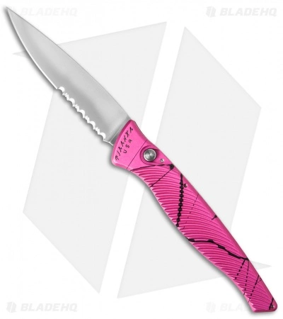 Piranha Knives has added the slim, discreet DNA automatic knife to their lineup. The handle is CNC machined 6061-T6 aluminum with flared fluting on either side and a subtle ‘double-helix’ pattern milled along the top side. Together with the flush-mount titanium pocket clip, the texture provides excellent grip. The DNA is a worthy everyday carry folder with a unique, attractive look and feel befitting a gentleman’s knife.