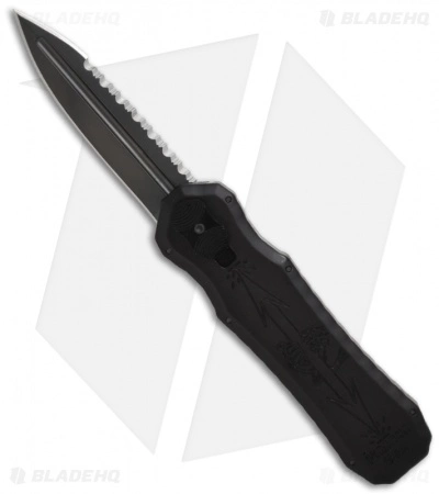 - Black DLC finished blade with one serrated edge and one plain edge.