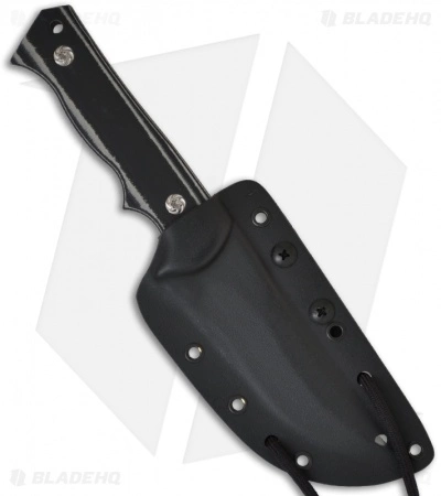 The Brend Combat Companion fixed blade knife is elegant and refined. The stone wash finished full-tang blade is premium S35VN stainless steel with a belly and upswept tip. The handle features black and tan G-10 scales that are fastened with custom screws. The handle is well-contoured with a small index choil for choking up on the blade. The accompanying sheath is kydex with a removable 1.5″ capacity Tek-Lok belt clip. For those who prefer to use this as a neck knife, it comes with a nylon wrapped ball chain.