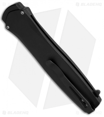 The Dark Angel from Pro-Tech is a beautiful knife with a sleek look. This single action out-the-front knife has great action that is quick and controlled. The dagger blade has a double edge and a black DLC finish. The aluminum body is black anodized. The Dark Angel also features a safety for added security and a pocket clip for carry.
