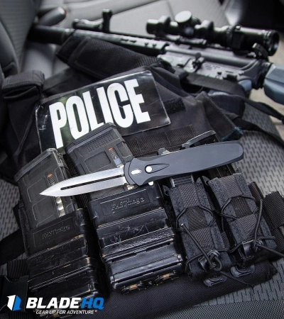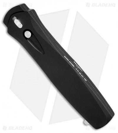 The Dark Angel from Pro-Tech is a beautiful knife with a sleek look. This single action out-the-front knife has great action that is quick and controlled. The dagger blade has a double edge and satin finish. The aluminum body is black anodized. The Dark Angel also features a safety for added security. Includes durable nylon sheath. The Dark Angel is a fine collection piece!