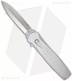 The Dark Angel from Pro-Tech is a beautiful knife with a sleek look. This single action out-the-front knife has great action that is quick and controlled. The dagger blade has a double-edge and stonewash finish. The stainless steel body is two-tone finished with satin faces and stunning stonewashed edges. This also features an abalone inlay push button.