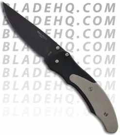 The Defiance features black coated 154-CM blade with ambidextrous thumb studs (you can use them to open the knife manually). The body is black anodized T-6 6061 aluminum, features a stainless liner lock mechanism, and has tan G-10 inserts on the front and back of the handle. The upper part of the front insert conceals a secret button to activate the knife automatically. The Defiance has a black finished pocket clip on the back (tip down) for easy carry.