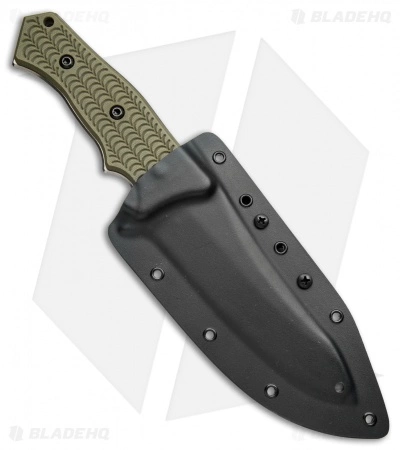 This Spindrift prototype has a stonewashed 154-CM stainless steel blade and OD green G-10 scales. Includes a Kydex sheath with TEK-LOK belt attachment.