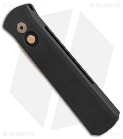 This Godson has a copper rose finished 154-CM steel blade with a plain edge. The handle is solid black anodized T6-6061 aluminum. Item includes copper rose finished hardware and a black finished TiNi tip-up pocket clip for easy carry.