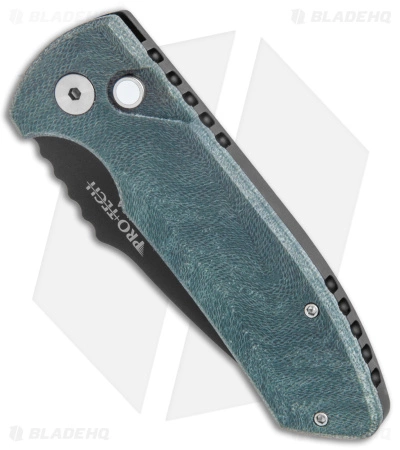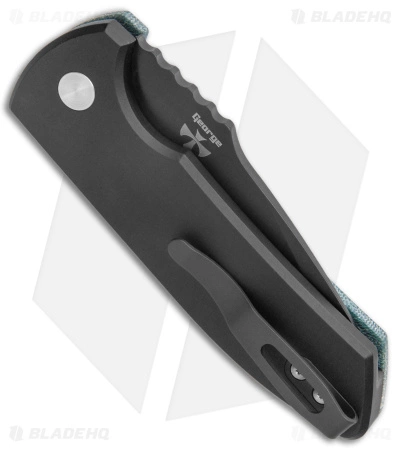 - Custom end-grain green micarta handle scale.
