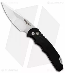 The TR-4 is a whole new take on Pro-Tech’s popular Tactical Response line. It incorporates a much requested sliding safety on the front of the handle. This TR-4 features a 4″ mirror finished 154-CM steel blade with a compound grind. The ergonomic handle is black anodized T6 aluminum. The handle has a Mother of Pearl inlay. The TR-4 is a knife that will not let you down. It fires hard, locks up like a rock (what else would you expect from Pro-Tech?) and feel great. The TR-4 has a pocket clip (tip up) on the back of the knife for easy carry.
