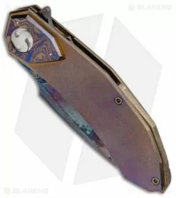Glenn Waters Custom Botan Galaxy Flipper Knife Heat Colored Ti (3.125″ Damascus)