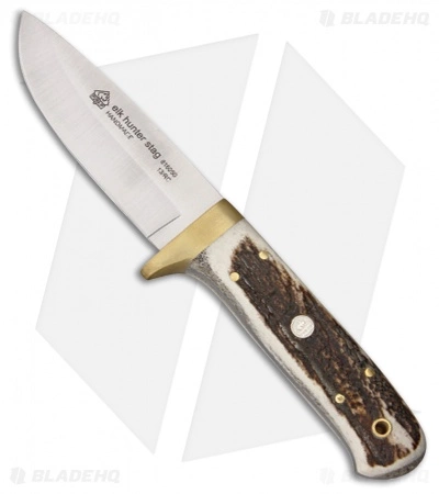 The Puma Elk Hunter fixed blade knife is a full-size camp or hunting knife ready for the trail. The 4″ stainless steel blade easily processes even the largest game animals. The 440C blade is easily sharpened and takes a fantastic edge. Rounded genuine stag handles are match and contoured for a comfortable, secure grip. Brass bolster and brass construction creates a platform for a solid, reliable knife, sure to serve for years.