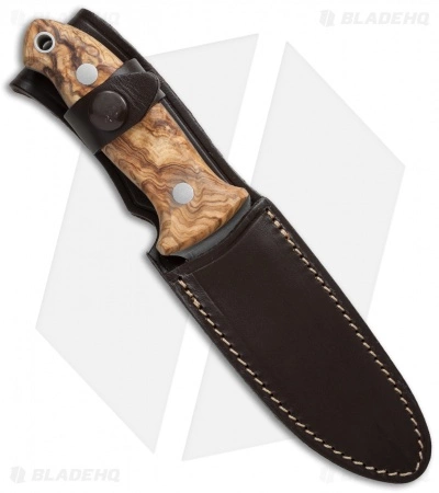 The El Turon is a small, yet durable fixed blade that is designed to withstand rugged outdoor use. It has a handmade design featuring beautiful olivewood handle scales and a full tang, stainless steel blade. The blade is made from 440C stainless steel and is available with a plain edge grind. There is a lanyard hole and a leather sheath included for convenient carrying options. Add this impressive knife to your fixed blade collection today!