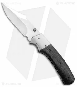 Making fine custom knives is in their blood, and this Freedom Fighter by Rainy and son Cory Vallotton is evidence of the claim. It’s a dual-action automatic with a hidden bolster release and thumb stud opener. The clip point style blade is hollow ground and satin finished. Polished carbon fiber scales and stainless steel bolsters sit atop a titanium liner lock frame. The liners and 440C stainless steel back spacer are hand filed. The Freedom Fighter is outfitted with a titanium pocket clip for tip-down carry.