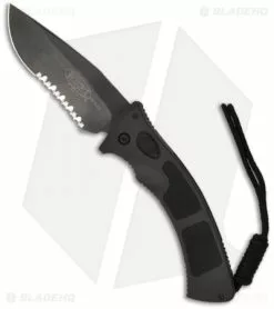 This rare Amphibian Automatic knife was made in September 2002 with serial number FN-0002. It features a black titanium-boride coated 14-4CrMo stainless blade. The back side of the blade has the HN Herstal logo and rifle. The handle is black aluminum with rubber grip inserts and firing button on front. Includes pocket clip for tip-up carry.
