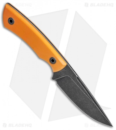 This Forager knife sports a black stonewashed 14C28N stainless steel blade and an orange G-10 handle.