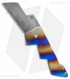The RichMade Knives Lightning Bolt is, as its name implies, a rather striking custom piece. This knife features an O1 tool steel blade paired with a unique striped titanium handle. A blade flipper allows quick and easy one-handed blade deployment. It comes fitted with an anodized tip-up titanium pocket clip. One of only two Lightning Bolt knives ever made.