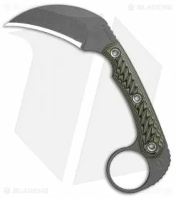 The RMJ Tactical Korbin Karambit features a Cerakoted 3″ Nitro-V blade and textured black/green G-10 handle scales. The slender profile of the handle is excellent for light carry and ease of maneuverability. Includes kydex sheath with belt attachment.