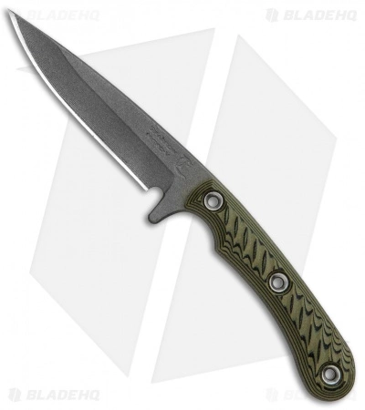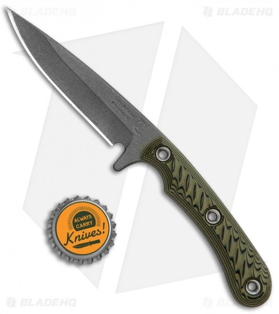 The RMJ Tactical Sparrow features a Cerakoted 3″ Nitro-V blade and textured Dirty Olive G-10 handle scales. The slender profile of the blade is excellent for everyday carry tasks, as well as self-defense applications. The included Kydex sheath has two soft-loop straps for securing the Sparrow to a belt or gear.