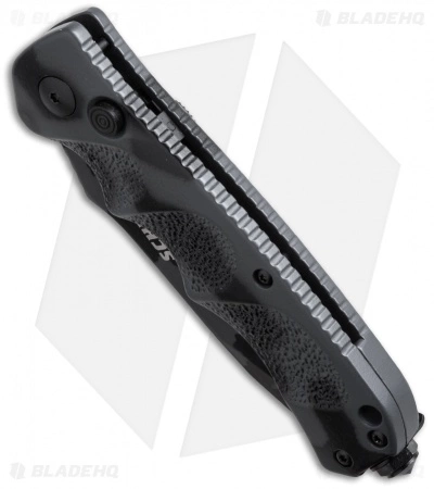 Whether it’s for everyday tasks or urgent situations, Schrade’s SC60C automatic knife has what you need. This model features an urban camo coated blade and handle. The drop point blade is designed for general utility tasks you encounter, while the glass breaker tip is available in case of emergency. The aluminum handle features sculpted and textured grips to improve safety and handling. The push button release gives fast action and secure lock up. A tip-up pocket clip and lanyard hole mean you will always have this blade within easy reach when you need it.