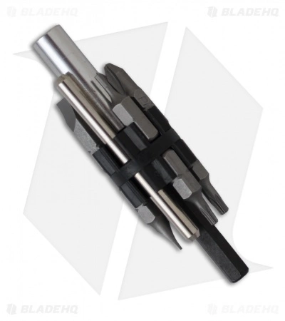 The Schrade Extreme Survival SCHF1 fixed blade is a big knife that features a single piece spear point style blade and handle made from 1070 stainless steel. The 7.5″ blade is partially serrated and the handle has diamond pattern knurling for a confident grip. Unscrewing the handle end reveals a driver tool with flat head (3/32″, 3/16″, 1/4″), Phillips (PH#0, 1, 2), Torx (10, 15, 20), and Allen (5/64″) tips. The O-ring keeps moisture out of hollow handle when tightened appropriately. Includes a ballistic nylon sheath.