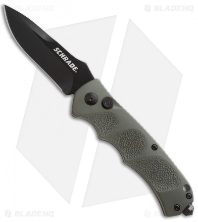 Whether it’s for everyday tasks or an urgent situation, Schrade’s SC60OD automatic knife has what you need. It sports a spear point style blade for general utility tasks you encounter every day, while the glass breaker tip is available in case of an emergency. The OD green aluminum handle features sculpted and textured grips to improve safety and handling. The push button offers fast action and secure lock up. A tip-up pocket clip and lanyard hole mean you will always have this blade within easy reach when you need it.