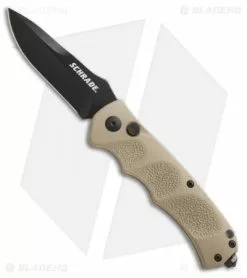 Whether it’s for everyday tasks or an urgent situation, Schrade’s SC60BR automatic knife has what you need. It sports a spear point style blade for general utility tasks you encounter every day, while the glass breaker tip is available in case of an emergency. The desert tan aluminum handle features sculpted and textured grips to improve safety and handling. The push button offers fast action and secure lock up. A tip-up pocket clip and lanyard hole mean you will always have this blade within easy reach when you need it.