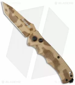 Whether it’s for everyday tasks or urgent situations, Schrade’s SC60DT automatic knife has what you need. This model features a desert camo coated blade and handle. The tanto blade is designed to handle piercing and slicing tasks you encounter, while the glass breaker tip is available in case of emergency. The aluminum handle features sculpted and textured grips to improve safety and handling. The push button release gives fast action and secure lock up. A tip-up pocket clip and lanyard hole mean you will always have this blade within easy reach when you need it.