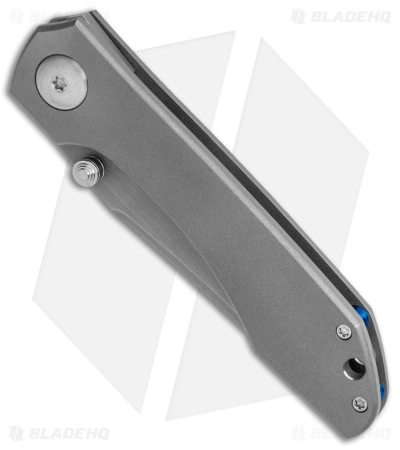 This Simeon Custom ThumbTo is from Blade Show East 2022. The blade has a gray smoke finish and titanium construction.