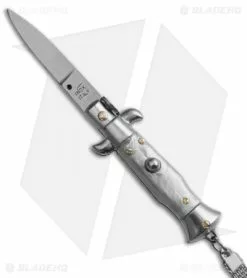 This 4″ Keychain Stiletto from SKM Italy comes in the classic style with a gary handle and a satin finished blade. SKM makes a variety of Italian stilettos featuring traditional designs at an affordable price. This 4″ model has a gray handle with stainless steel bolsters. Brass pins add a classic finishing touch to the piece. The blade has a flat grind with a plain edge and a satin finish. Experience the affordable Italian quality of these authentic stilettos from SKM Italy.