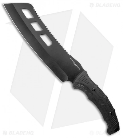 The Smith & Wesson M&P Extraction & Evasion Cleaver is an oversized, overbuilt knife that can saw, cut, and chop its way out of any situation. It’s got a thick stainless steel blade with a long sawback. The handle is rubberized for positive grip. The pommel is textured and reinforced for blunt attacks and hammering. Includes a nylon sheath.