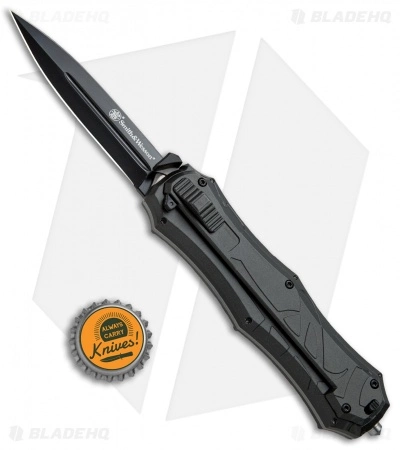 The Smith & Wesson M&P OTF offers spring assisted single-action deployment with a press of the thumb slide. A locking feature at the top of the handle releases the blade for manual closing. Once open, the knife is a capable EDC/tactical cutting tool, and because of its out-the-front nature, it offers a double-edge blade. As an added perk, launching that assisted mechanism is a ton of fun!