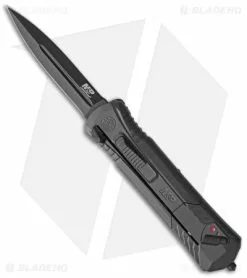 The Smith & Wesson M&P OTF offers spring assisted single-action deployment with a press of the thumb slide. A locking feature at the top of the handle releases the blade for manual closing. Once open, the knife is a capable EDC/tactical cutting tool, and because of its out-the-front nature, it offers a double-edge blade. As an added perk, launching that assisted mechanism is a ton of fun!