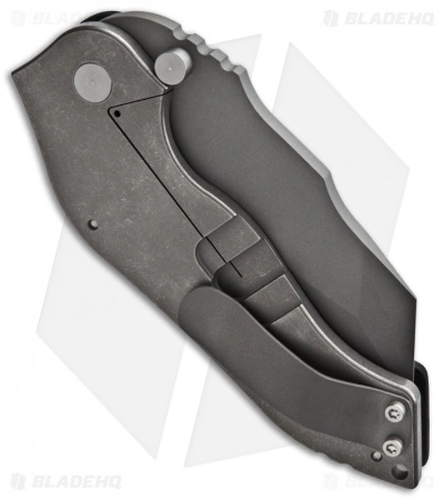 The DMF from Sniper Bladeworks is big, but easy to tame with its user-friendly shape. This knife has a bead blasted S30V steel blade and a black G-10 handle with milled grip grooves. The titanium framelock is stonewashed, while the pocket clip has a smooth bead blast finish.