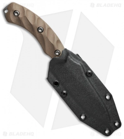 The Jackal is an EDC fixed blade featuring a sleek, full tang design. This model is equipped with desert tan G-10 handle scales that have been 3D milled for a fitted, ergonomic grip. The drop point blade is made from 8670M high carbon steel and has a gun metal gray PVD coating. A black kydex sheath is included with the knife that can be adjusted for vertical or horizontal belt carry. The Jackal fixed blade offers an EDC design that is comfortable to use and to carry.