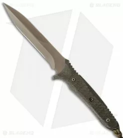This Spartan Blades Breed Fighter Dagger Knife has a green micarta handle and an FDE (Flat Dark Earth) dagger blade made from CPM S35VN stainless steel.
