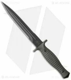 Beauty can be seen in the execution of this knife, with symmetry displayed throughout. The black tungsten DLC finished blade on this model has hollow grinds, razor sharp edges, and full-tang, 1/4″ thick steel construction that will stand up to the rigors of combat and hard use. Comfort-enhancing beveled tang edges offer tactile feedback and a refined look too. The handle has screw-fastened OD green G-10 scales that feature flat-faces, as opposed to the fully rounded original pattern. This seemingly small variation adds considerable grip in tandem with the groove ring texture and blade guards. A black Kydex sheath is supplied with this V-14 Dagger knife.
