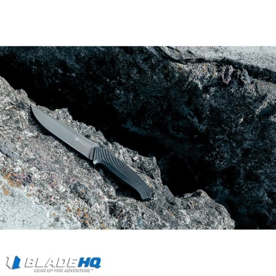 The Steel Will Knives Darkangel fixed blade knife with it’s black PVD coated drop point blade and black forprene handle makes for an excellent combat knife ready for hard work.