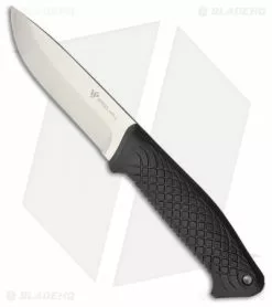 The 3.875″ stainless steel drop point blade features a precise point and moderate belly, great for meal prep and cleaning game. The tang extends past the handle to form a blunt exposed end, great for a small hammering tool. Black grooved TPE handles are rounded and comfortable in hand while providing plenty of traction. Included is a high quality black leather belt sheath for easy carry on the trail or at the camp site.