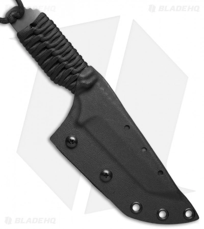 This DB-L fixed blade has a tiger stripe finished CPM S30V tanto blade, multi-ground with a flat, razor sharp edge. The front tang is marked “STRIDER” and the back has the FWP logo. Full tang construction makes this knife very solid. Handle is black paracord wrapped and features jimping on the thumb ramp. Includes heavy duty Kydex sheath.