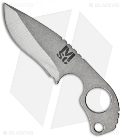 This Custom Mick Strider SLCC fixed blade features stonewashed titanium construction. The drop point blade has a recurve profile, chisel grind and carbide edge. The MSC SLCC comes with a black Kydex sheath and 550 paracord neck loop.