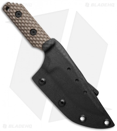 The PR model is a semi-compact fixed blade with full-tang CPM S30V steel construction. This knife has a spear point blade with hollow grinds and a tiger stripe finish. The handle is outfitted with coyote brown gunner grip G-10 scales. Includes a Kydex sheath with belt attachment system.