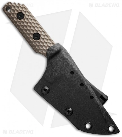 This SA fixed blade knife from Strider has a 3/16 inch thick S30V stainless steel spear point blade with a black Cerakote finish. The front tang is marked “STRIDER” and the back has their logo. Full tang construction makes this knife very solid. The handle is GG “Gunner Grip” coyote G-10 and features jimping on the thumb ramp. Includes a Kydex sheath.